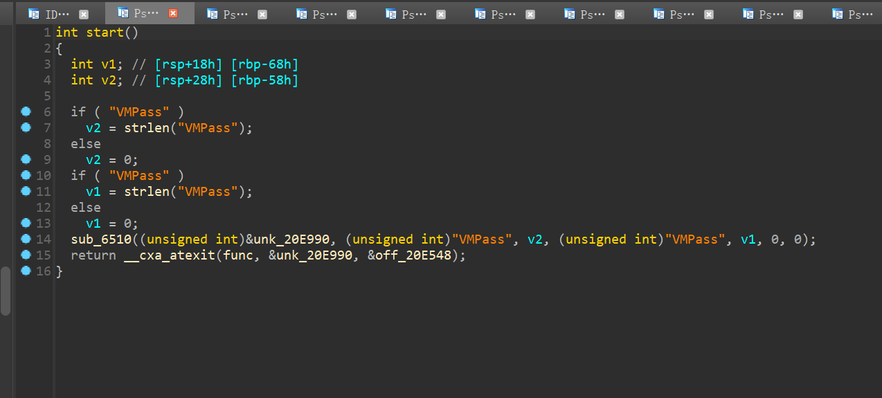 从start开始分析题目的IR规则,因为start是IR函数的注册点 因为没有初始化全局变量,所以从start这里找个函数跟进,找到这里