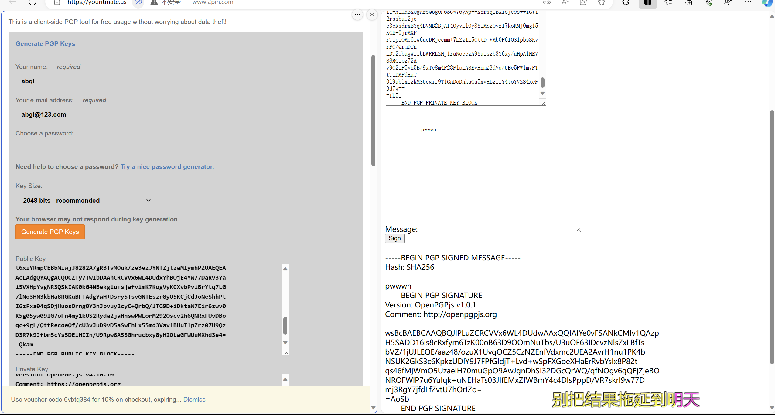 第一个网站是生成pgp公钥和私钥,第二个是进行签名