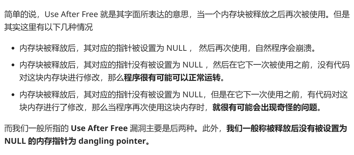 关于UAF的原理,wiki介绍的已经很简洁明了,不多赘述