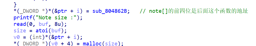 可以申请0-4一共5个0x8的note,每次申请完note后可以申请一个自定义大小的chunk