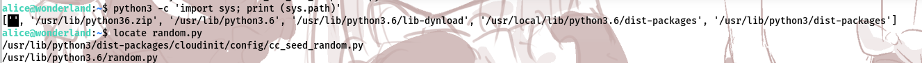 可以看到python3及相关库的位置及random库的位置 要注意,python库选取执行的顺序是从脚本所在目录开始的