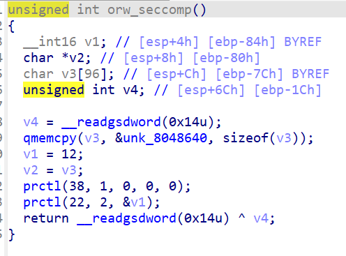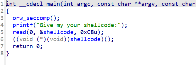 main这里有一个orw_seccomp()函数