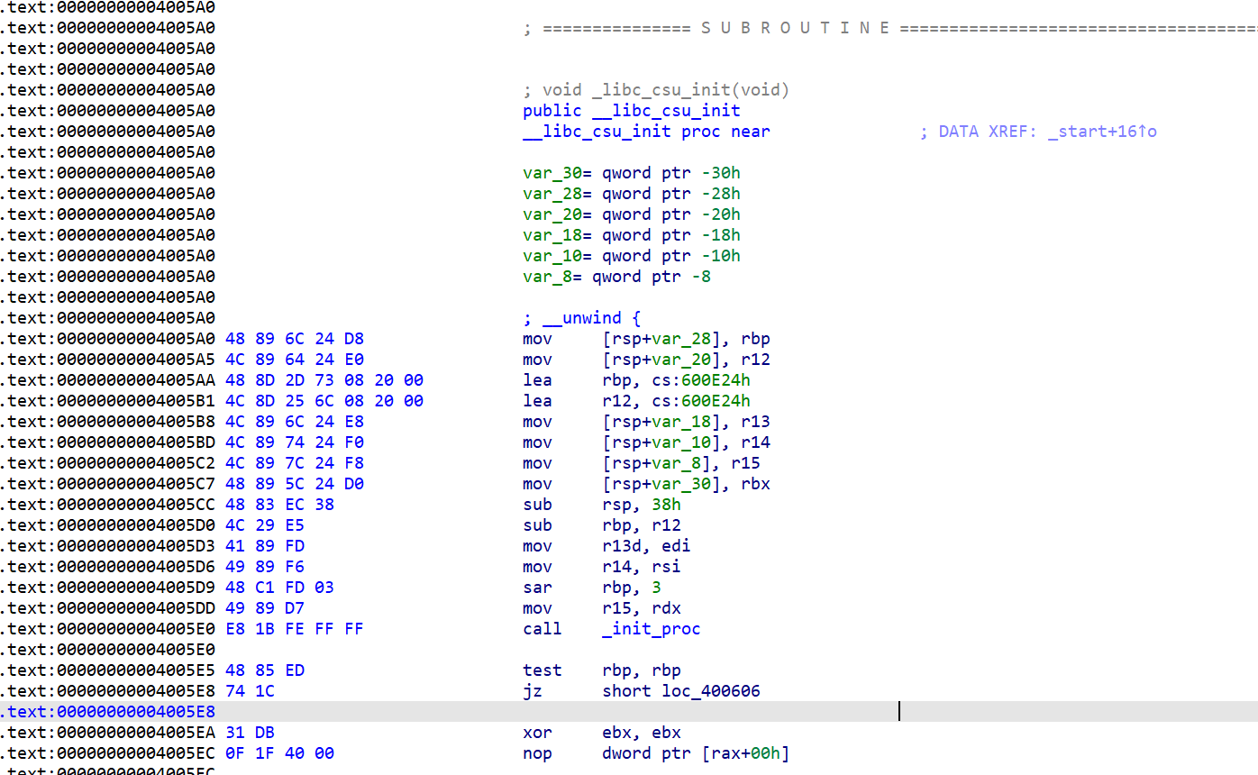 开启了nx考虑构造rop,ida64打开看一下_libc_csu_init函数