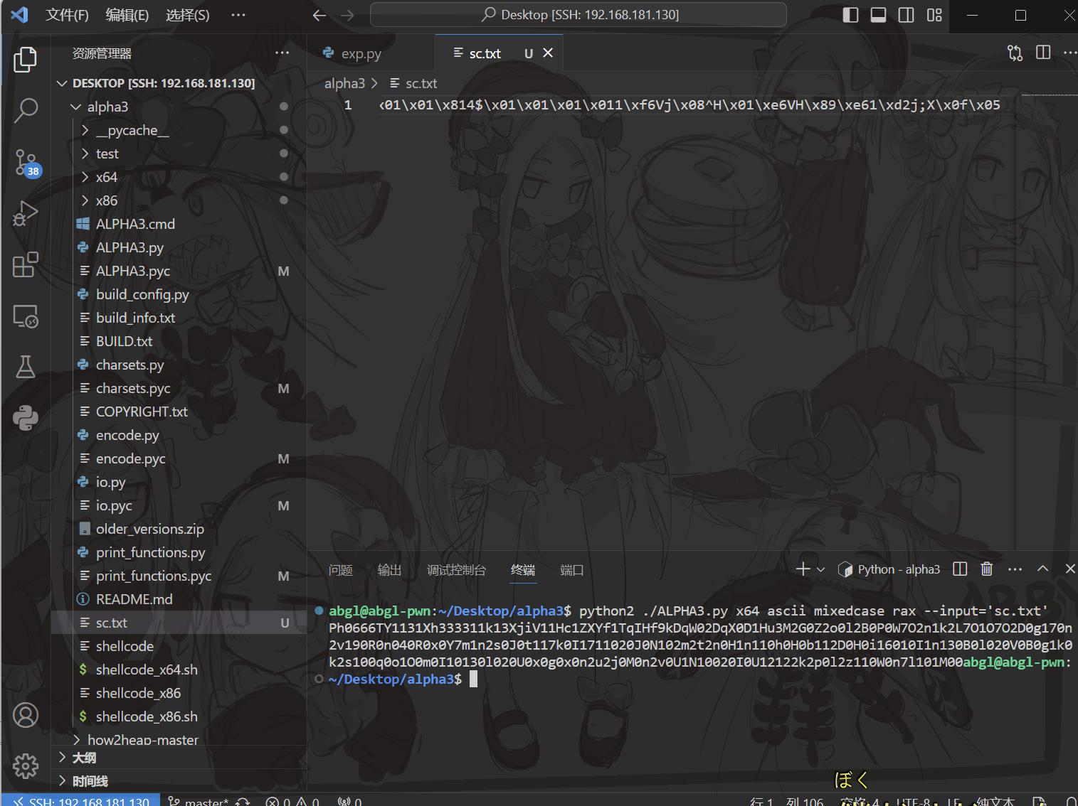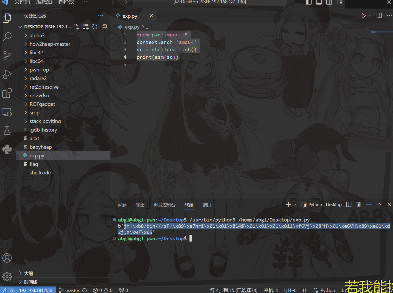 首先利用pwntool生成shellcode